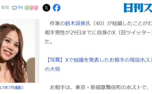 ねえ、最近のニュースで作家の鈴木涼美さんがホストと結婚したって知ってる?面白いカップルだよね。おめでとうって思わない?